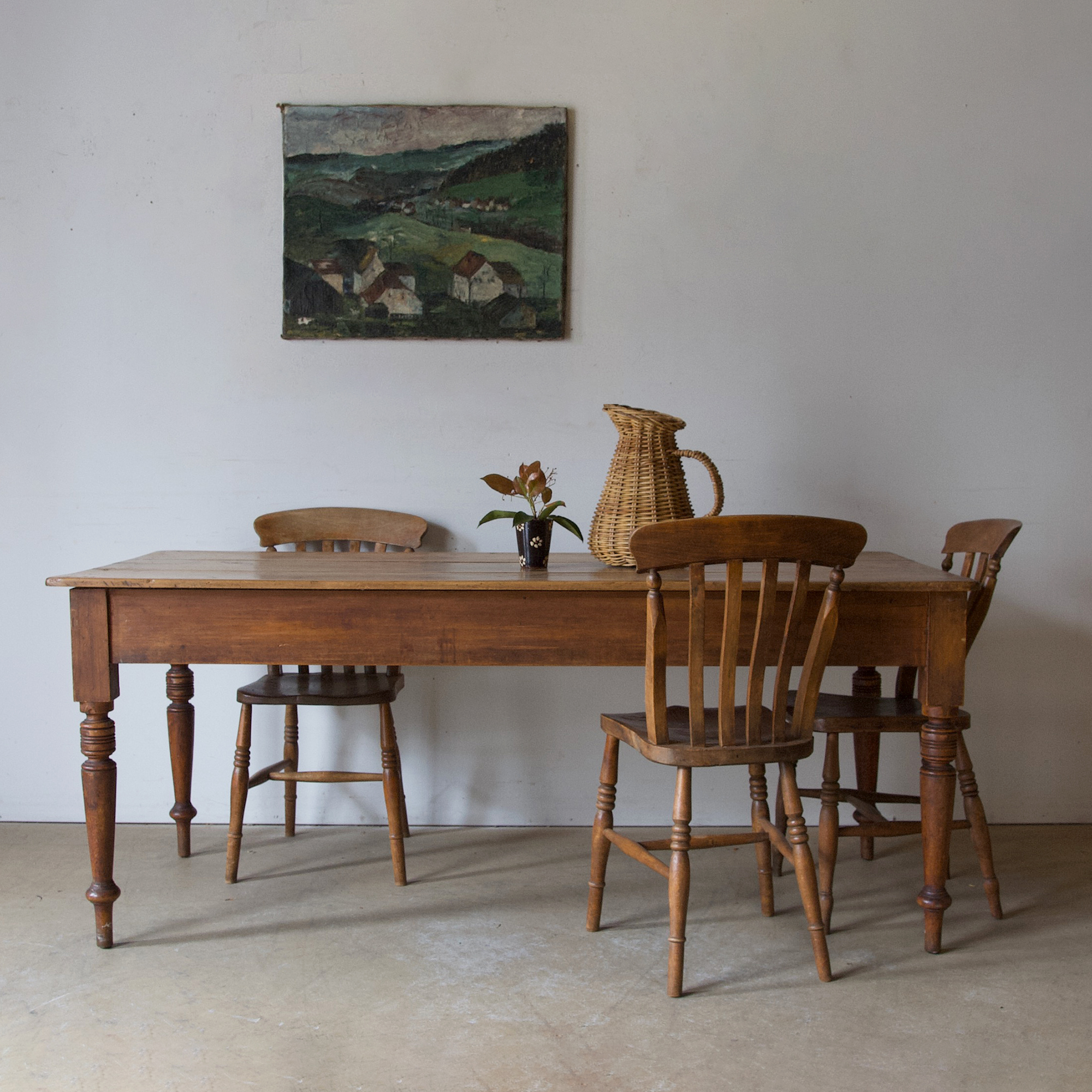 A late 19th century, colonial kitchen dining table with turned legs, beautiful time worn patination and elegant proportions. An eight seater table or a very generous six ... a gorgeous rustic table for a large kitchen or smaller dining space.