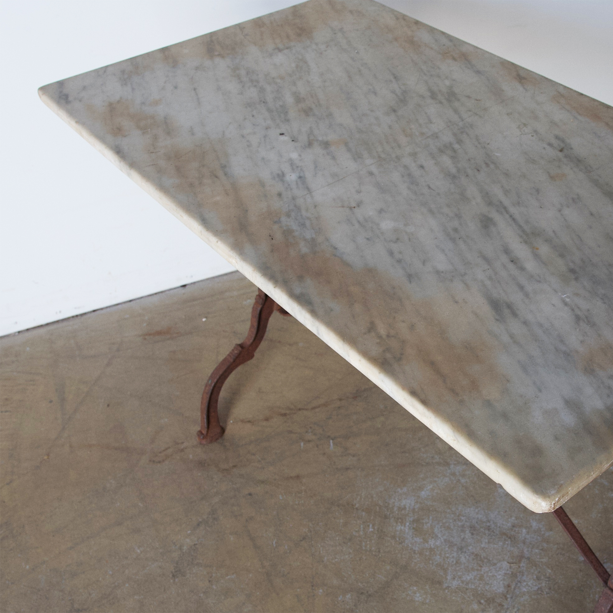 A gorgeous, turn of the century, French wrought iron bistrot table with its original marble top. A great table for indoors or outdoors - breakfast coffee or evening aperitifs.