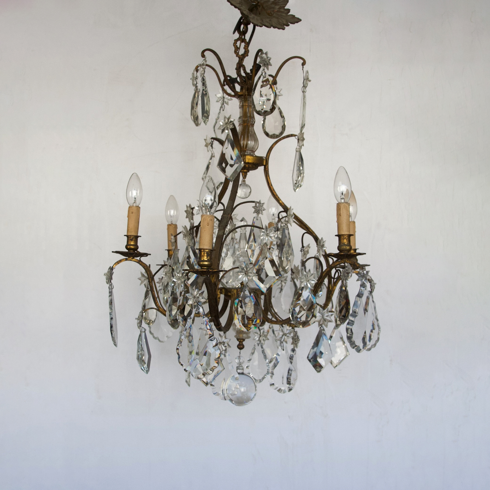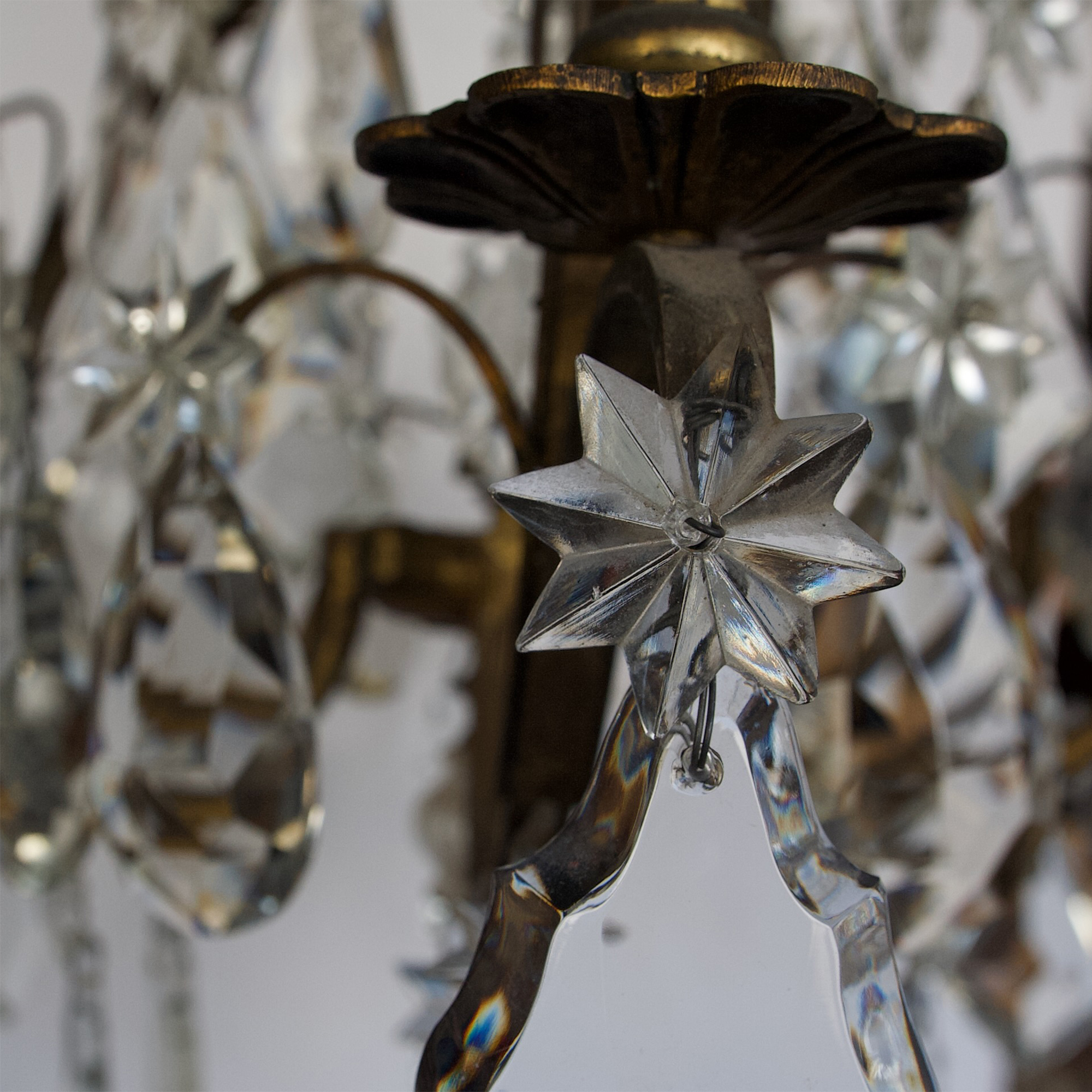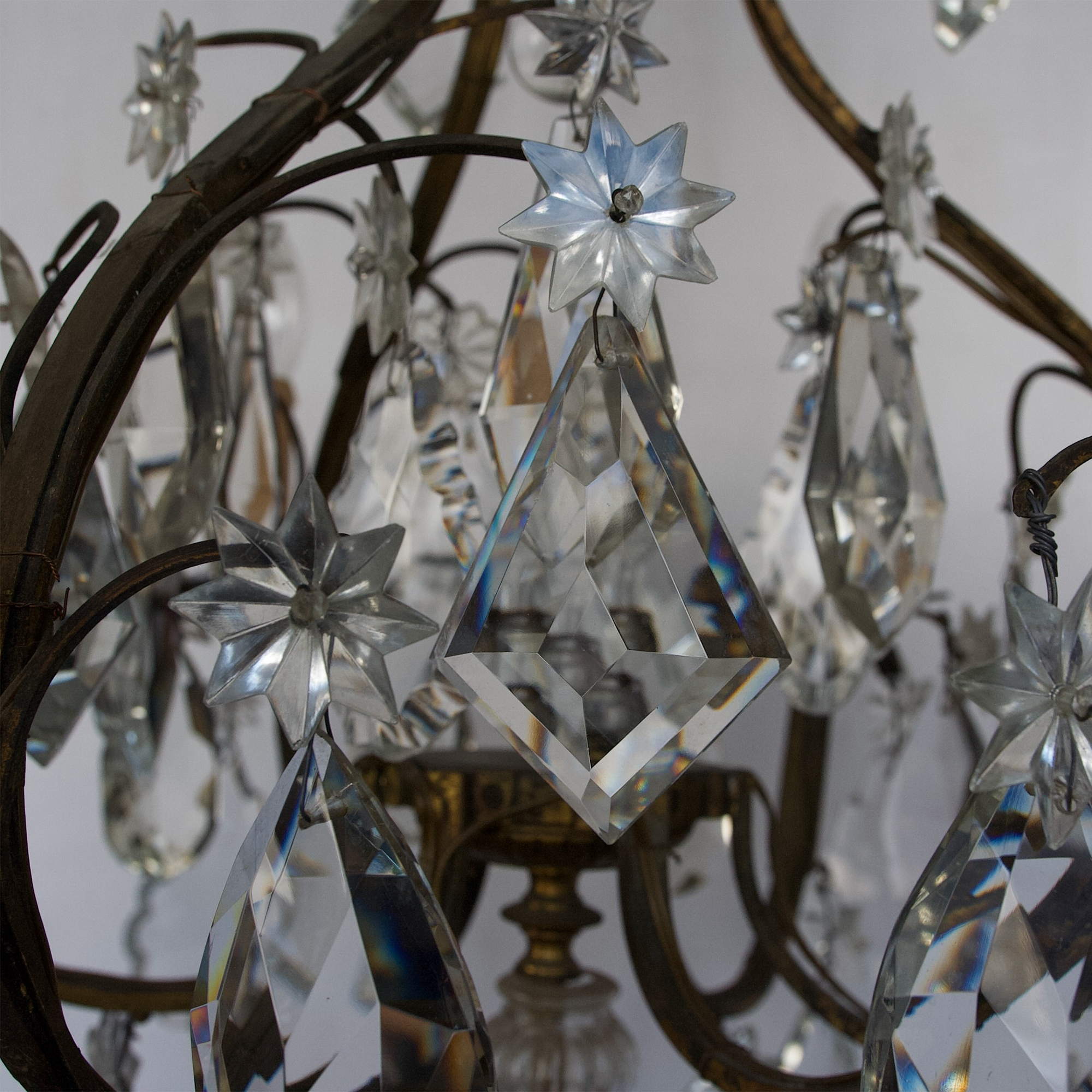 A stunning, large, French, early 19th century, gilt bronze and crystal chandelier. A superb quality chandelier, attributed to Baccarat. This gorgeous chandelier has all the hallmarks of early 19th century, Parisian workshop fabrication - high quality crystal glass drops, hand cut and crisply tooled. The chandelier was originally fabricated for candles only and has been wired for electricity at a later stage. The gilt bronze frame is in original condition with some tarnishing to the gilt finish. A festive flourish of a chandelier - a high quality and prestige lighting accent for a discerning interior.