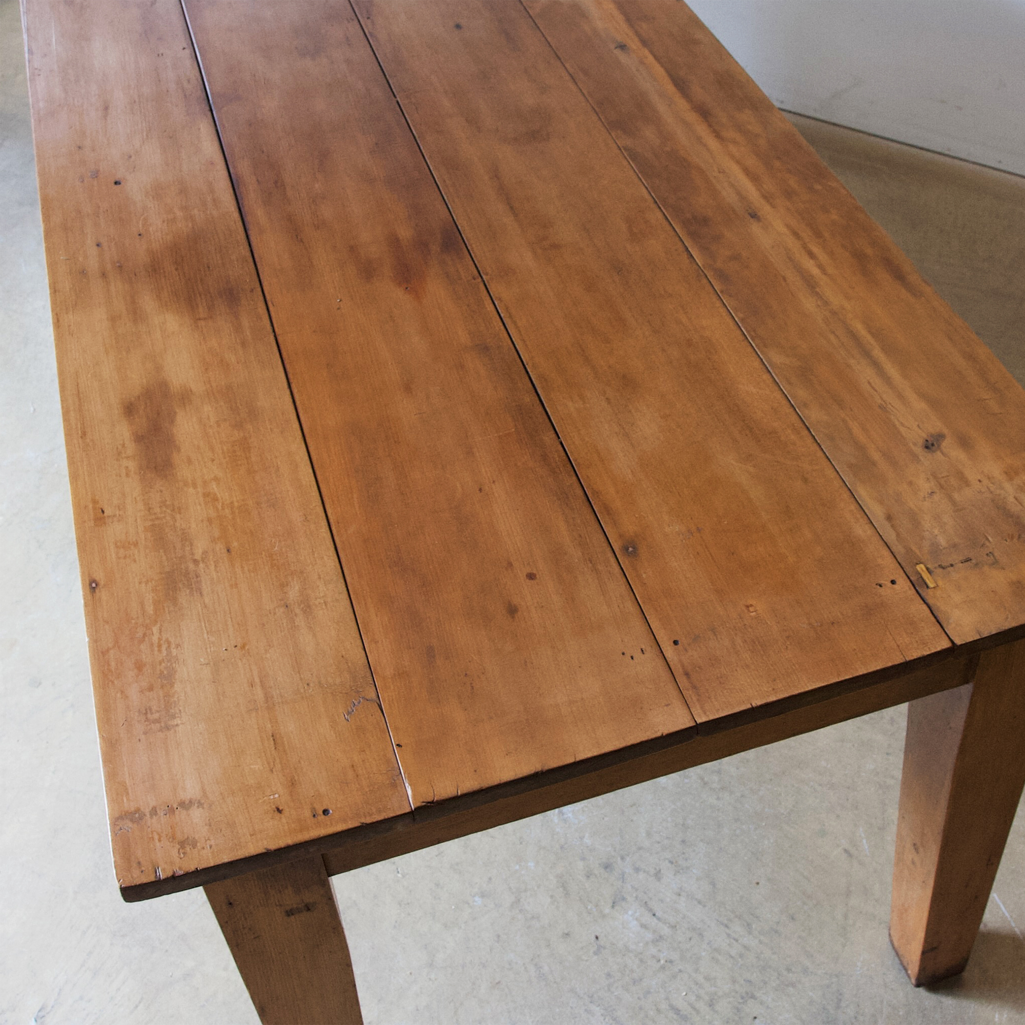A gorgeous, turn of the century - circa 1900, colonial dining table in kauri. Solid and sculptural tapered legs, planked top and wonderful dimensions - this is a superb rustic dining table for a modern home.
