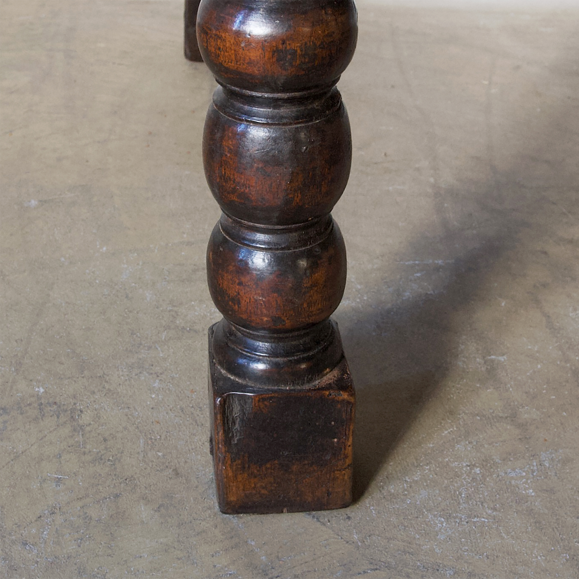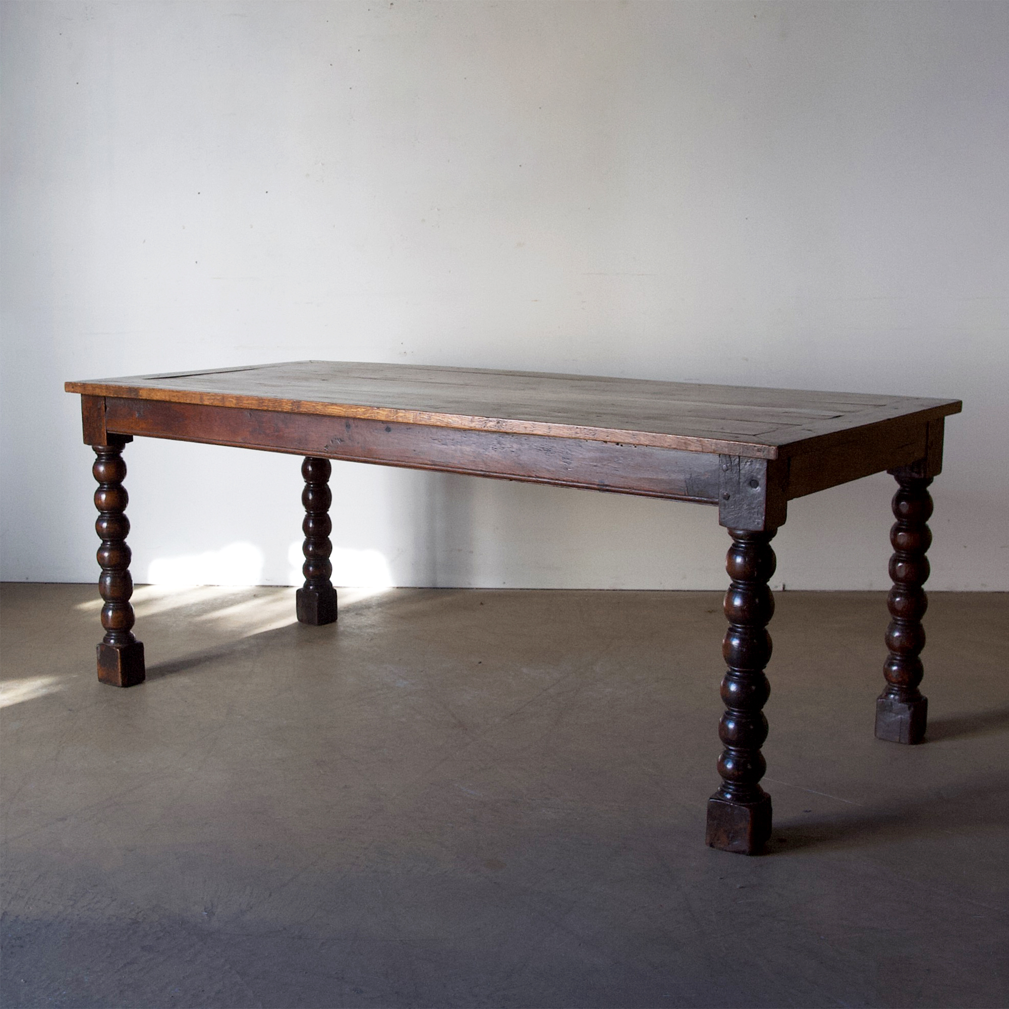 An exceptional, 18th century, French museum reading table in oak. Original bobbin turned legs and a warm and deep patina burnished by centuries. This gorgeous table is the perfect dimensions for use as a dining table - a practical yet richly characterful dining table for a modern home.
