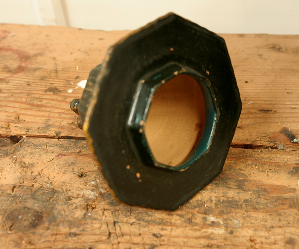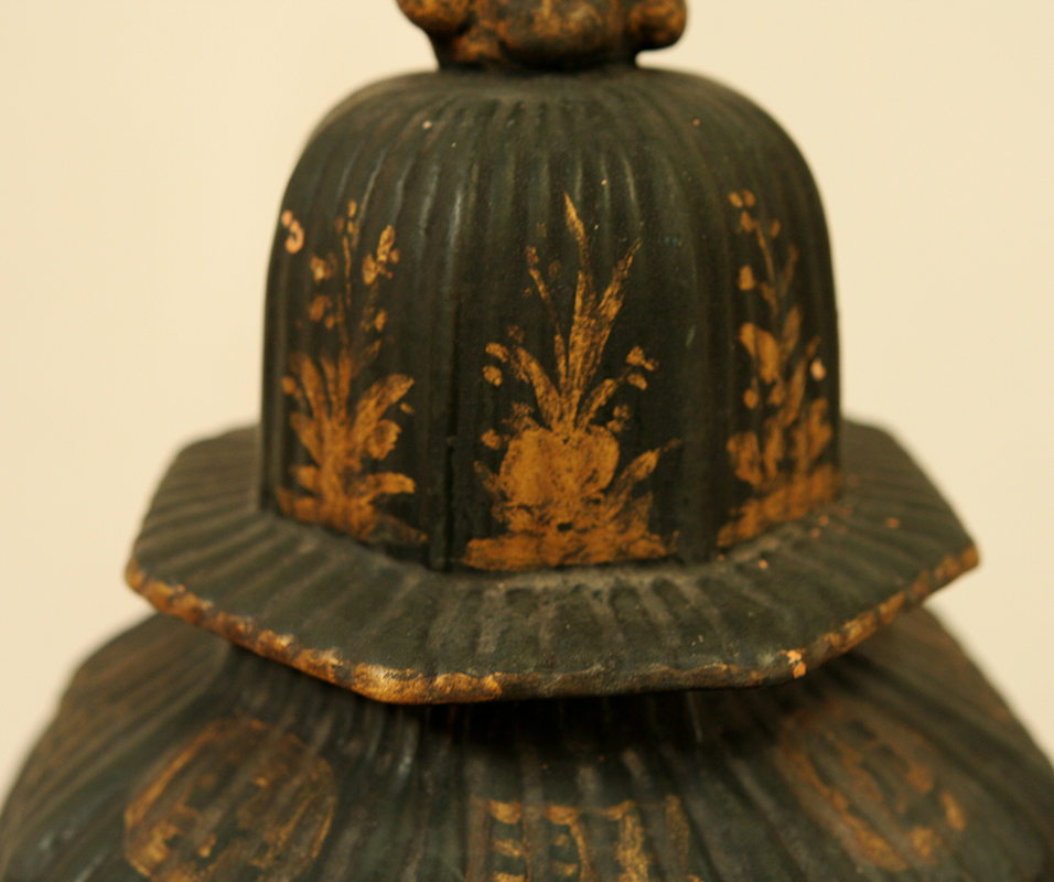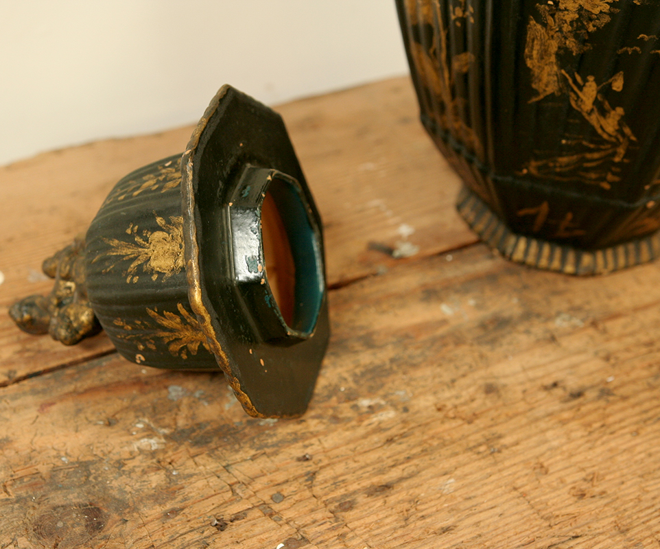 A stunning and unusual, early 20th century, French chinoiserie vessel - circa 1910. This beautiful object is made from terracotta and handpainted with gold decoration on a black background.