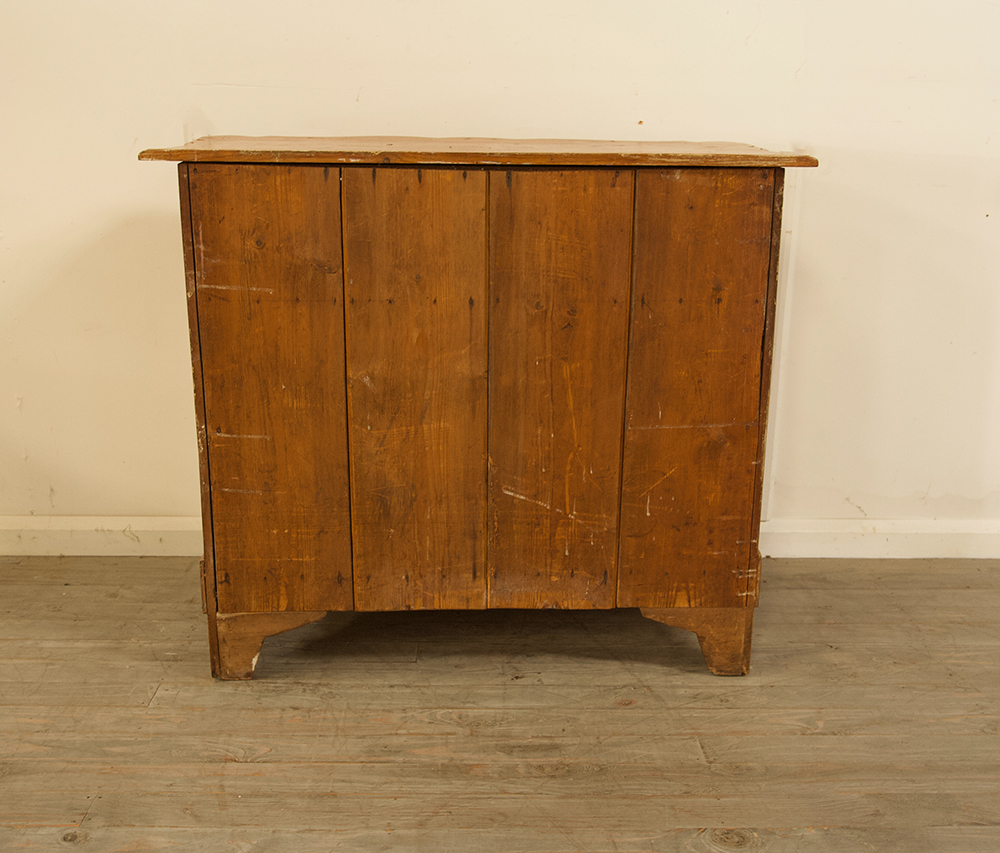 A beautiful Dutch 19th century commode in the Regency style. This charming commode exhibits the graceful serpentine lines of the Regency period - a 19th century commode oozing an 18th century aesthetic. Original hardware and pretty gustavian blue drawer interiors - the commode is crafted from a mixture of pine and beech which indicates that it was once entirely painted. The wood is now warmly patinated by time - a characterful and stylish commode which would add some decorative gravitas to any room.