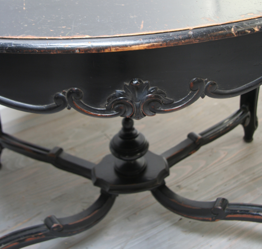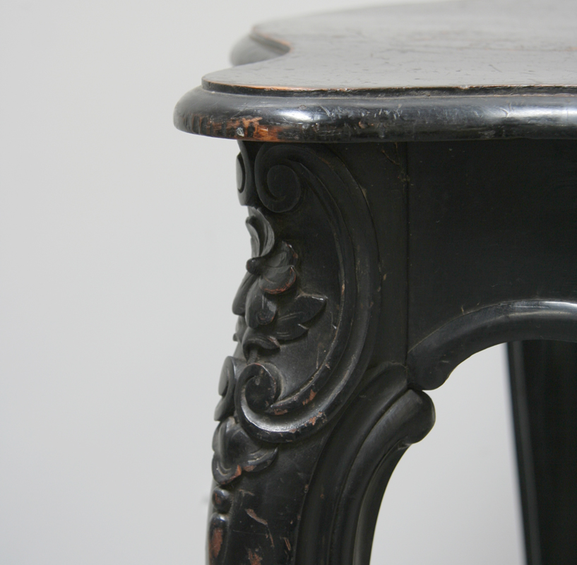 A chic little Napoleon III, ebonised centre or occasional table in the Louis 15 style dating from the late 19th century, circa 1880. This is a very pretty little table with a multitude of uses - gorgeous floral carving and stylish, original, ebonised finish.