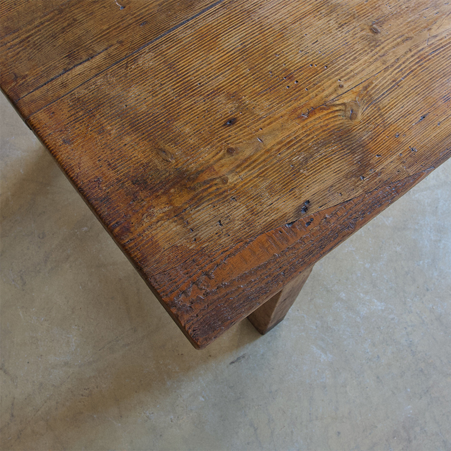 A gorgeous, French, 19th century, 10 seater, farmhouse table - French pine top and oak base with traces of original chestnut coloured paint on the base. Great dimensions and a stretcher base. A beautiful time - worn patina - the perfect rustic dining table for a modern home.