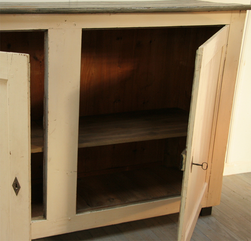 This charmingly simple 19th century cupboard used to store baking moulds and odd shaped paraphernalia in a French bakery. The unusual height of the cabinet makes it perfect for displaying a treasured collection or copperpots and other kitchen implements perhaps. A fabulous and stylish storage solution - the pared back rustic directoire style of the piece gives it an almost contemporary appeal and the subtle colourings remind me of the superb restraint of gustavian taste.