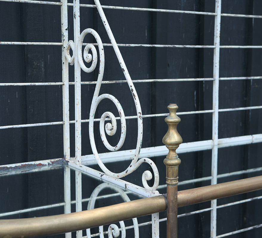 A stunning turn of the century, circa 1900, French, Parisien baker's rack. Fabricated from wrought iron and brass with glass shelving. This beautiful bakery fitting would be a fabulous addition to a kitchen or a great feature for a commercial space. The top section dismounts for ease of transport and passage through doorways !