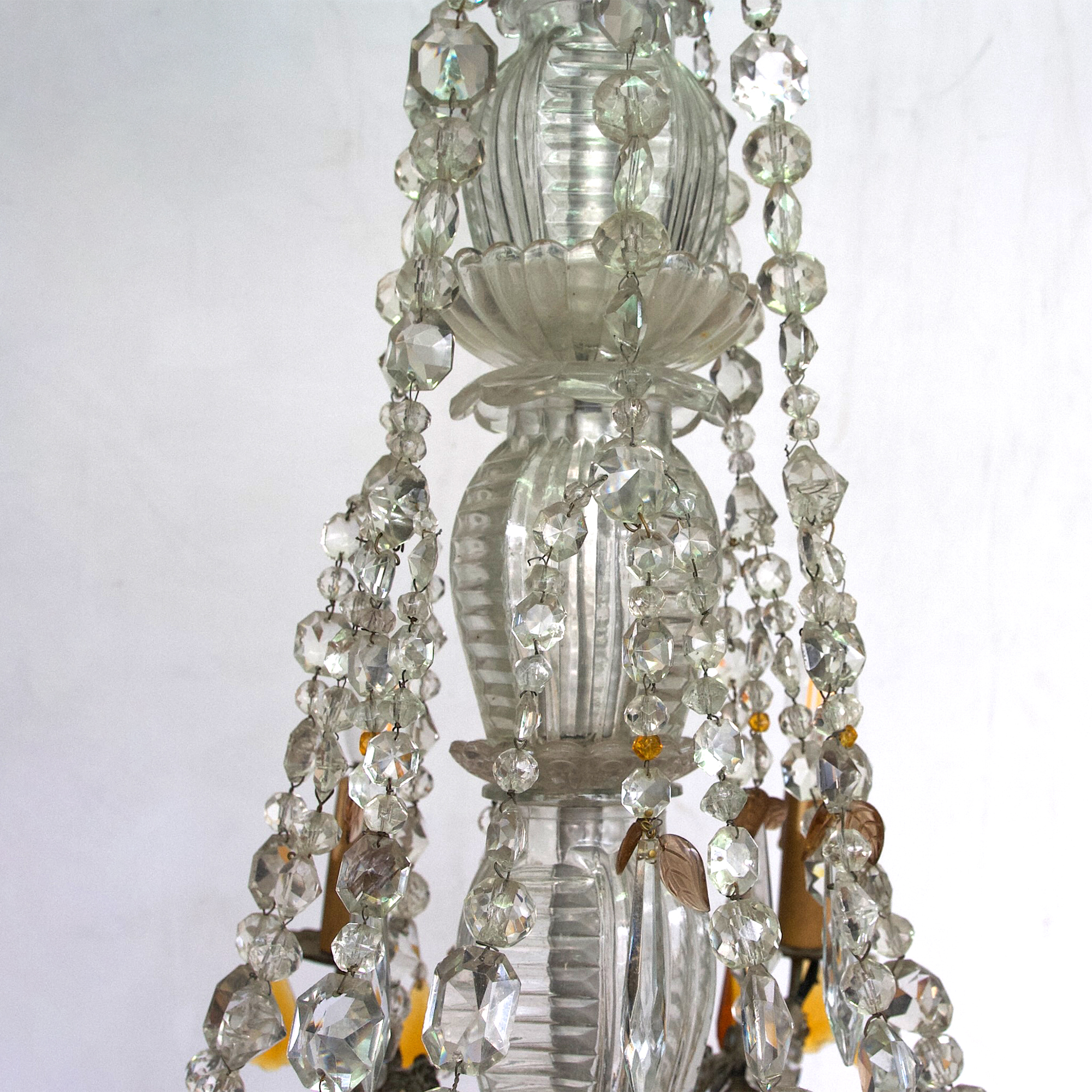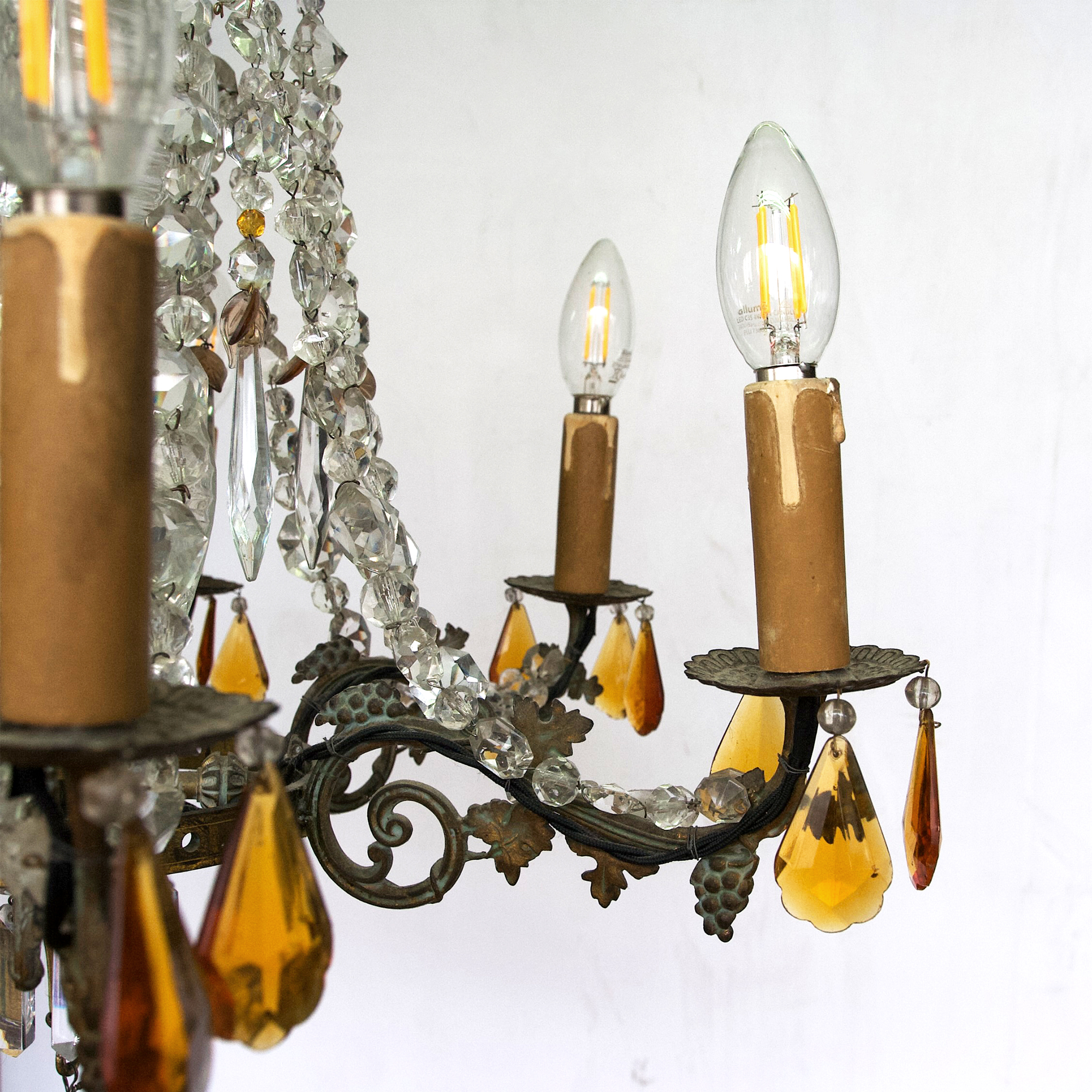 An elegant, French, late 19th / turn of the century chandelier in the Belle Époque style. - circa 1900. This beautiful chandelier has amber and amethyst and grape and vine leaf details cast into the gilt bronze frame. Long and lovely - a spectacular lighting feature for any home.
