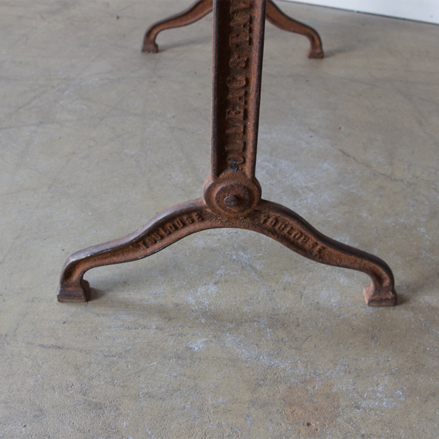 A gorgeous, turn of the century, French wrought iron bistrot table with its original marble top. A great table for indoors or outdoors - breakfast coffee or evening aperitifs.