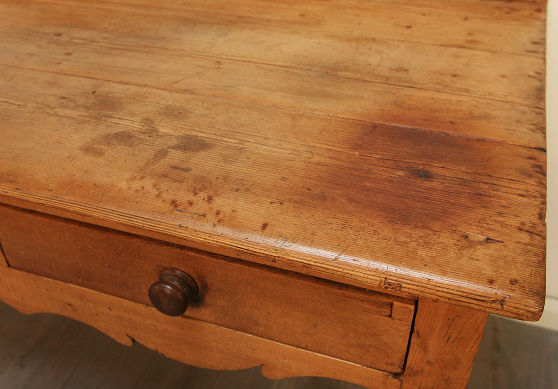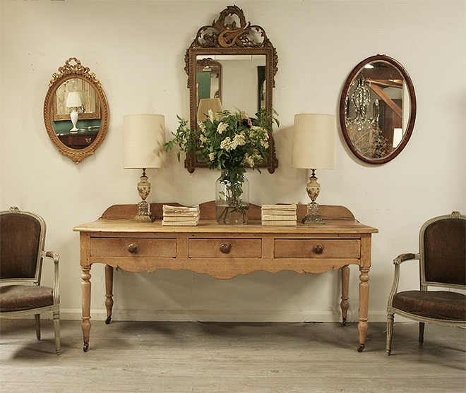 An exceptionally pretty, late 19th century, French couturier's or tailor's worktable. Warmly patinated and oozing character this table would make a stylish buffet, display table or kitchen piece.