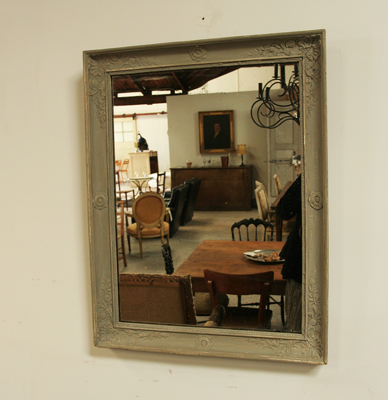 A pretty French 19th Century mirror with a dove grey painted finish and original glass. A lovely mirror for a bedroom or bathroom or any room with a moody grey decor.