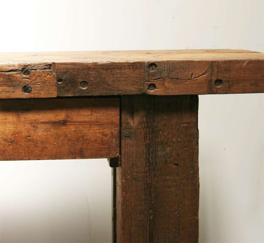 A beautifully pared back French 19th century workbench. A stylish side table for a modern home.
