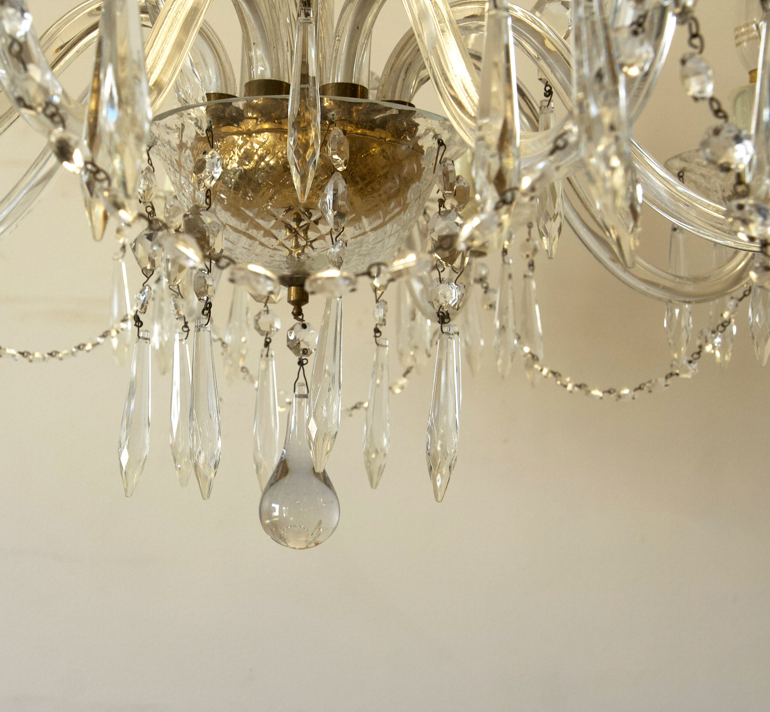 A pretty early 20th century crystal chandelier in the Liège style - an elegant lighting feature for a modern or classical interior.