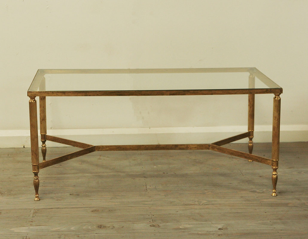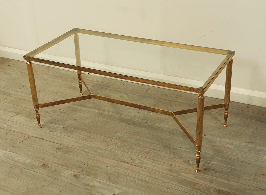 A chic 20th century, modernist glam brass and glass coffee table in the style of Maison Jansen.