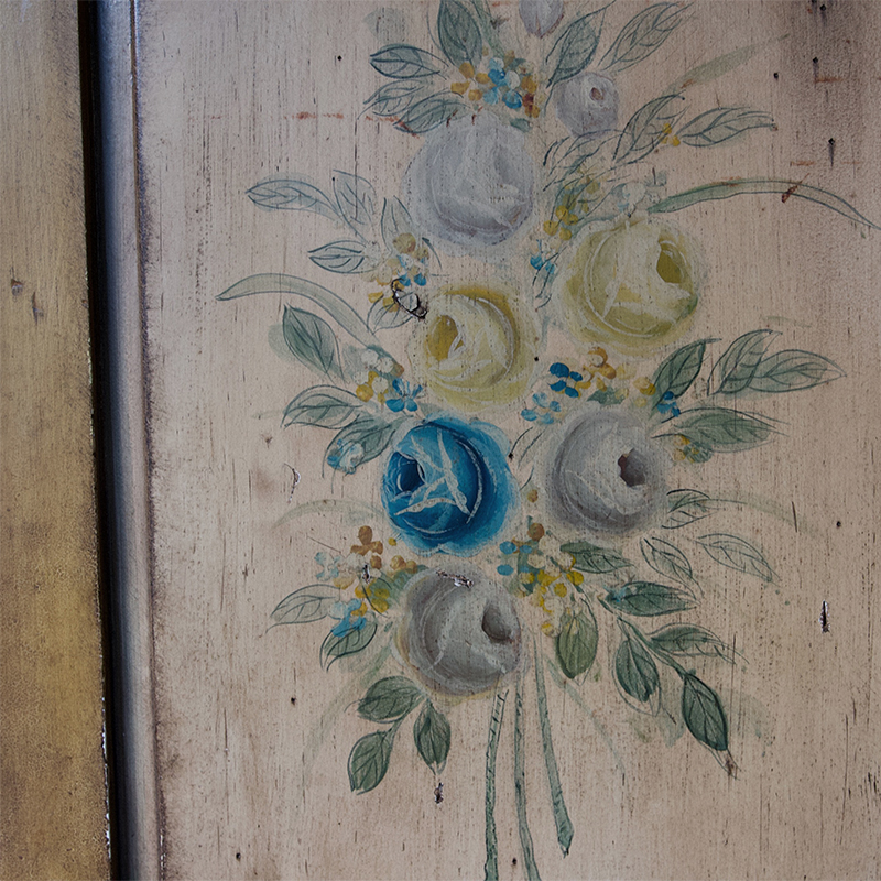 A pretty, 1950's reproduction Provençale style armoire with hand painted floral decoration. A decorative and whimsical piece - a charming storage solution for any room.