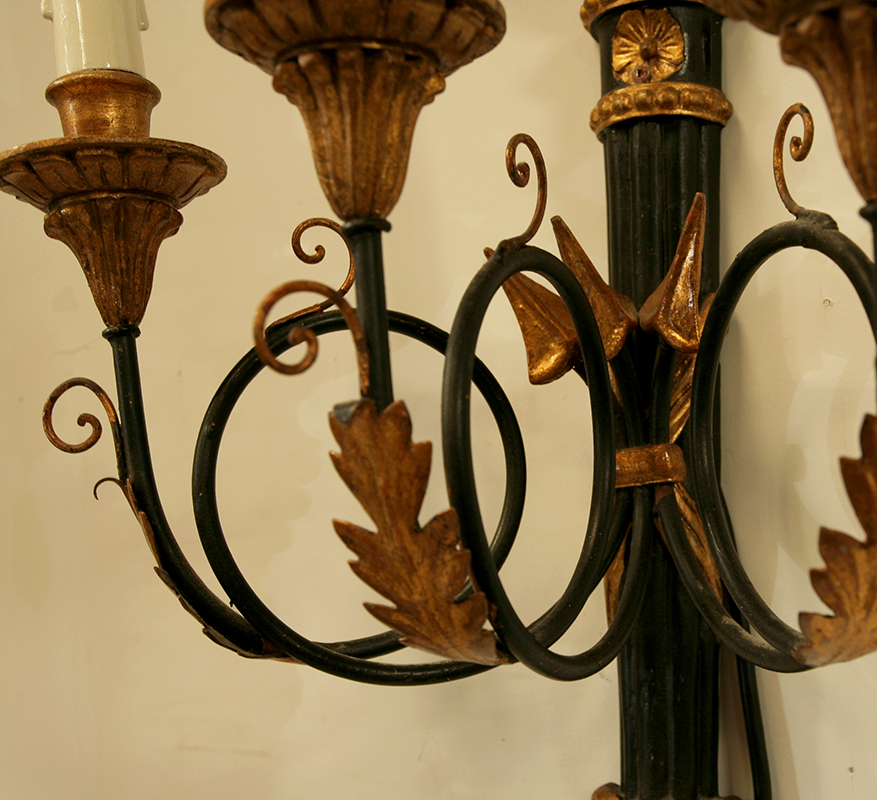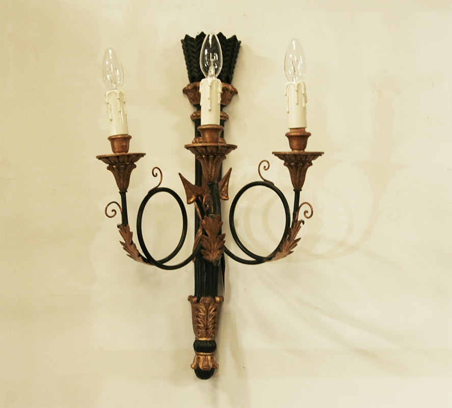A wonderfully decorative pair of sconces in the Empire style. Mid 20th century fabrication - these sconces have a fabulous Hollywood glam appeal, a great lighting statement for a stylish interior.