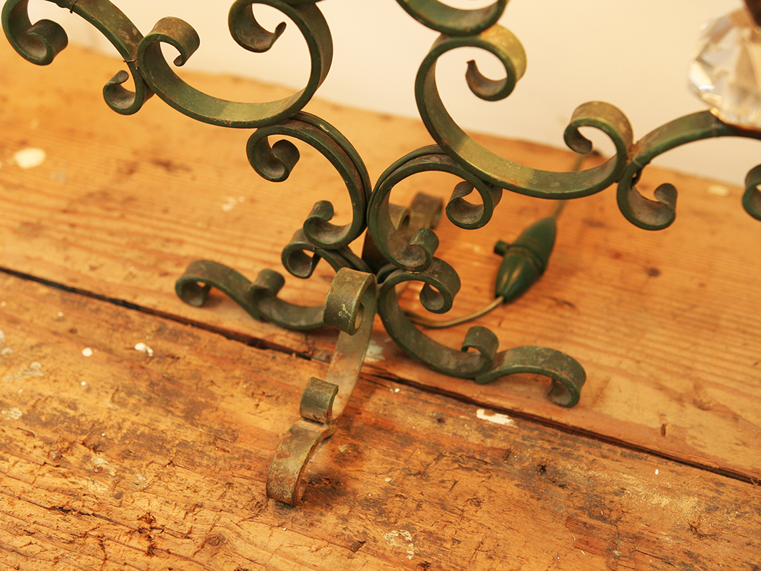 An elegant pair of French, 1940's, wrought iron and crystal table lamps. These charming lamps are so evocative of this period - sophisticated and feminine they exude boudoir chic. Priced as a pair.